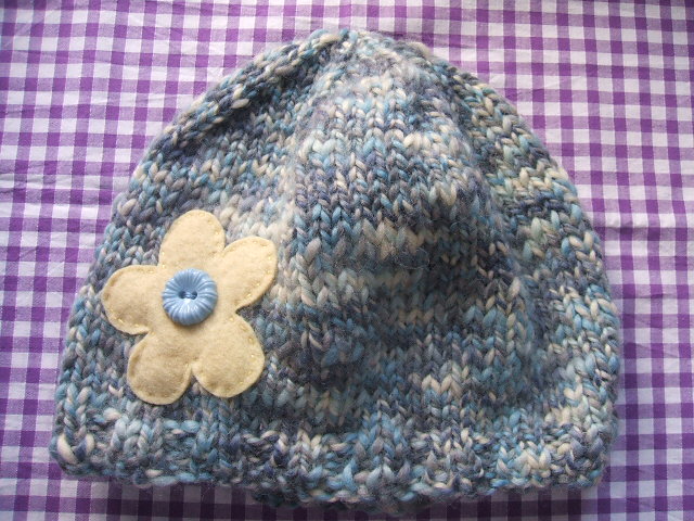 Pam asked for a tutorial on the little knitted beanie hats, so here goes. I have to warn everyone that I pretty much 'wing it' where knitting patterns are concerned so although this hat was originally based on a hat pattern I saw somewhere or other it has been pretty much altered beyond all recognition by me over the past few years. You can use any thickness of yarn and any size of needle to make the hats. All my hats have been knitted up from various thrifted yarns (a lot of them Rowan yarns) I've come across.